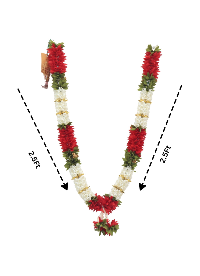Add a touch of elegance and festive charm to your home with this 5ft artificial red and white decorative garland. Perfect for pooja rooms, living spaces, doorways or event decor, it brings vibrancy, warmth, and a cheerful aesthetic to any setting. Its striking red and white combination creates a traditional and auspicious vibe, ideal for festivals, weddings or everyday decorative purposes.