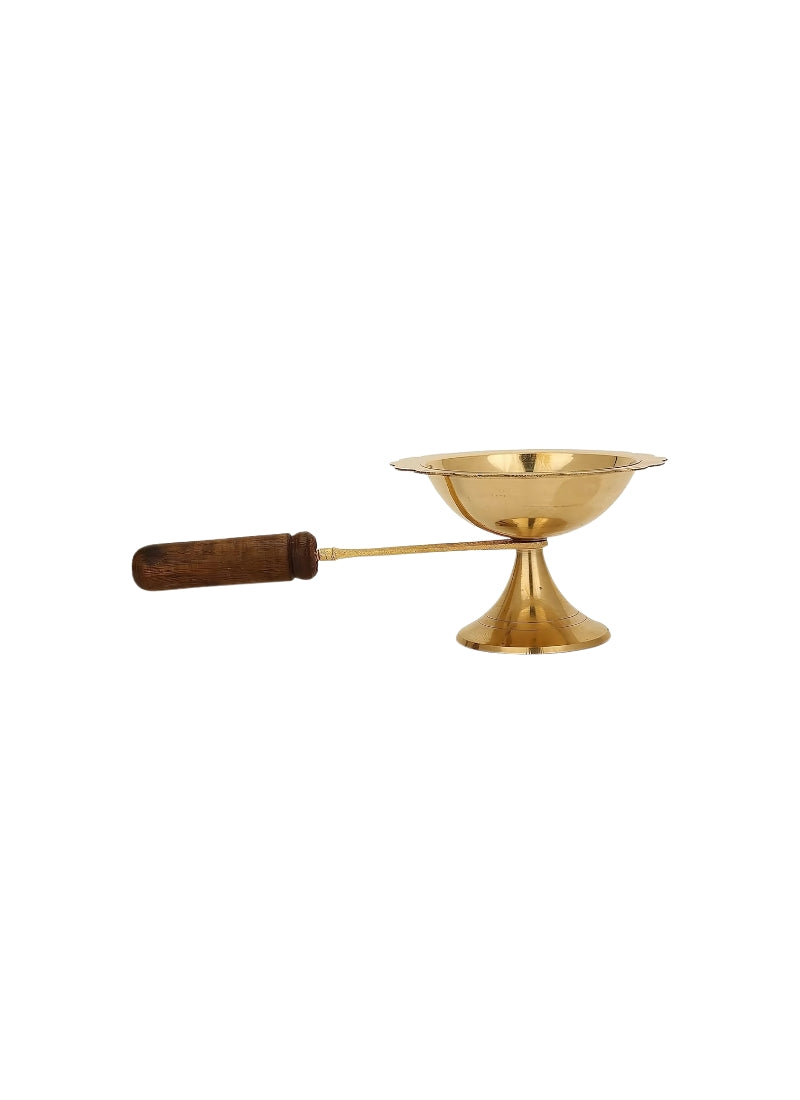 Brass Camphor Holder with Wooden Handle Handcrafted Aarti Lamp for Pooja & Rituals