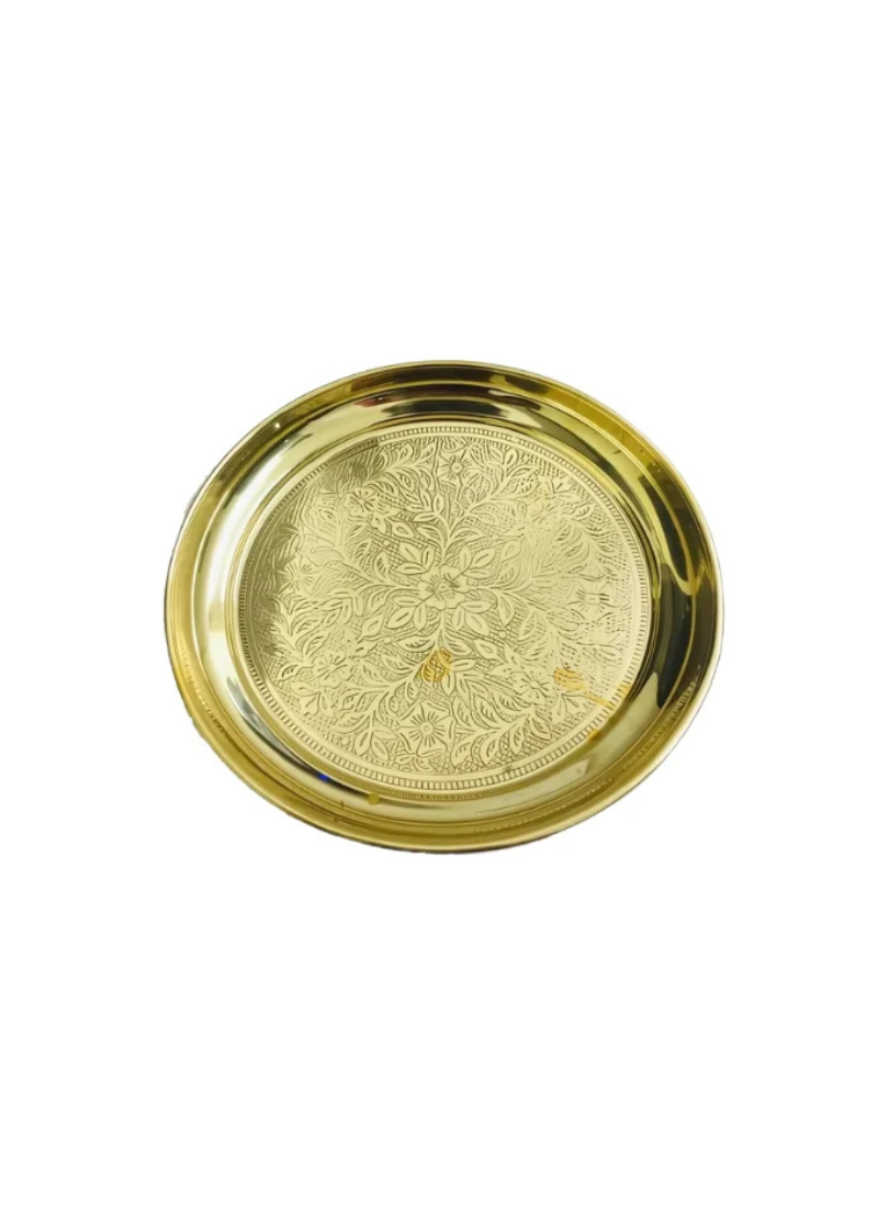 Bring divine grace and traditional beauty to your sacred rituals with the Brass China Plate Ambose 9". Perfect for daily pooja, festive offerings, and temple ceremonies, this brass plate is ideal for holding diyas, flowers, kumkum, turmeric, and other pooja essentials. Its intricate Ambose design adds a timeless touch of elegance to your home temple or pooja setup.