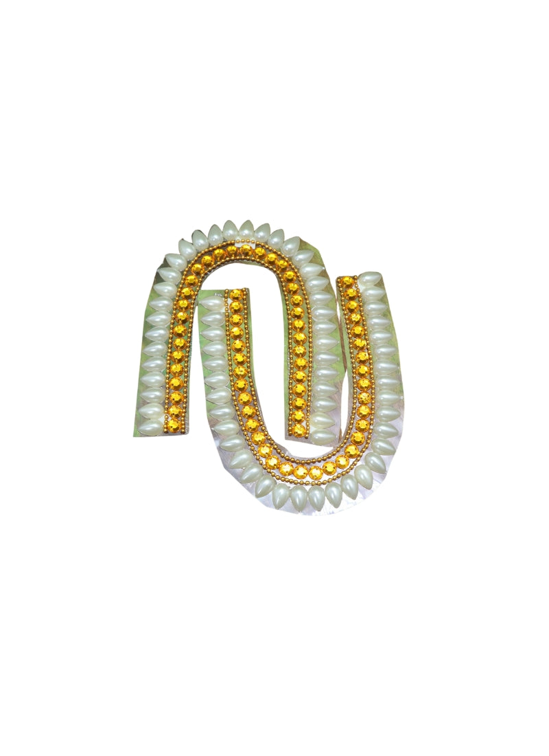 Brighten your pooja decor with the divine radiance of this Devotional Decorative Yellow Stone piece. Adorned with shimmering yellow stones and bordered by lustrous pearl-like detailing, it is perfect for Goddess Alankaram, temple backdrops, or festive celebrations such as Navaratri, Varalakshmi Vratham, and Diwali. The vibrant yellow hue symbolizes wisdom, positivity, and divine blessings, making it an auspicious addition to any spiritual space.