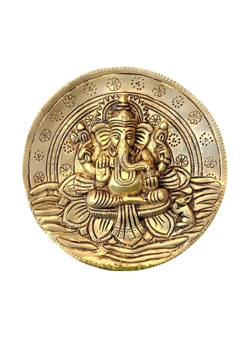 Invite divine blessings into your home with this beautifully crafted Brass Ganesha Wall Hanging. Featuring Lord Ganesha seated gracefully on a lotus, this elegant piece symbolizes wisdom, success, and the removal of obstacles. With fine detailing and a timeless brass finish, it makes a perfect addition to your pooja room, living space, or entrance. Ideal for home decor, gifting, or temple use, this sacred wall hanging reflects spiritual beauty and cultural richness.