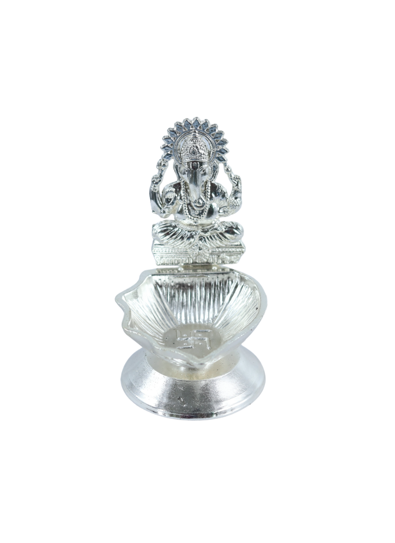 German Silver Ganesh Deepak Elegant & Auspicious Pooja Accessory
