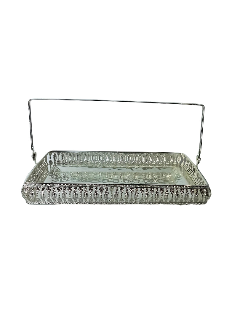 Add a touch of traditional charm and practicality to your home or event with this 9-inch German Silver Rectangle Metal Tray. Ideal for serving pooja offerings, sweets or fruits, it also brings a festive and refined look to your dining table, pooja room or living space. Perfect as a return gift for weddings, festivals or special occasions, it combines elegance with everyday functionality. This tray is durable, corrosion-resistant and long-lasting, ensuring it maintains its shine and beauty over time. Its rectangular 9-inch design makes it suitable for daily use, festive celebrations or gifting, adding a sophisticated touch to any occasion.