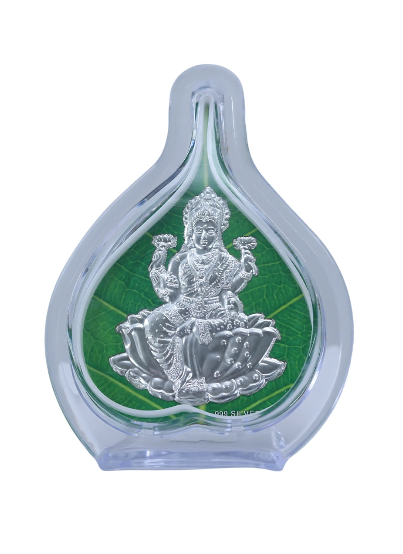 Invite divine blessings into your home with this beautifully crafted Laxmi Leaf Frame. Featuring Goddess Lakshmi gracefully seated on a lotus, this frame symbolizes wealth, abundance, and spiritual harmony. The elegant silver-finished design adds a radiant charm, perfectly complemented by the natural green leaf background that signifies growth and good fortune. Ideal for your pooja room, living space, office desk, or as a thoughtful return gift for auspicious occasions.