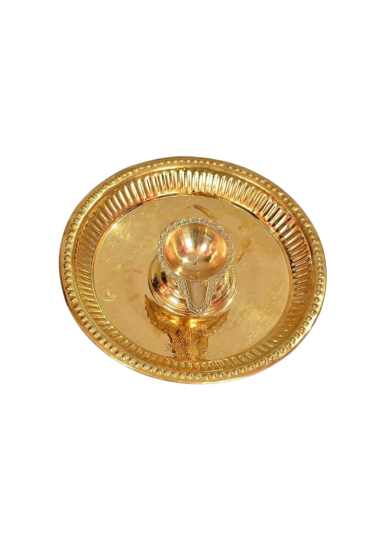 Celebrate devotion and tradition with the Brass Mangalam Plate Set 13.5", a beautifully crafted set designed to enhance your pooja rituals and festive ceremonies. The 13.5-inch Mangalam plate comes with coordinated accessories, ideal for performing aarti, offering prasadam or organizing pooja essentials like diyas, kumkum, turmeric and flowers. Its elegant golden finish adds a classic touch to your home temple or festive decor.