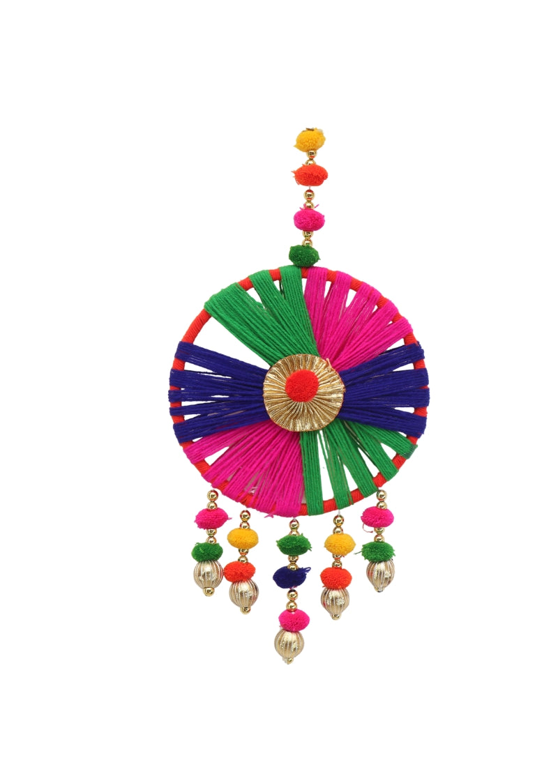Bring home the perfect blend of vibrancy, tradition and artistic elegance with this beautifully handcrafted multicolor thread decorative wall hanging. Thoughtfully crafted with fine attention to detail, it adds a festive, joyful and graceful touch to any corner of your home. The vivid threads paired with sparkling golden beads create a captivating focal point, enhancing both festive décor and everyday elegance while spreading positive energy and cheerful vibes.