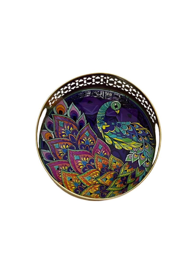 Peacock Tray Elegant Handcrafted Metal Tray with Vibrant Peacock Design