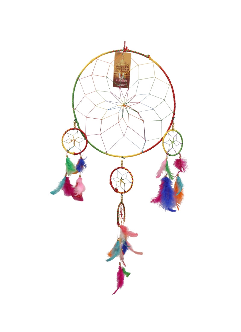 Infuse your home with color, joy and positive energy with this beautifully handcrafted rainbow dreamcatcher, featuring vibrant feathers and a whimsical design. Perfect for bedrooms, living areas or pooja corners, it adds a playful yet elegant touch to your décor. The radiant rainbow hues and intricate feather detailing make it a unique decorative piece that blends artistic charm with traditional positivity.