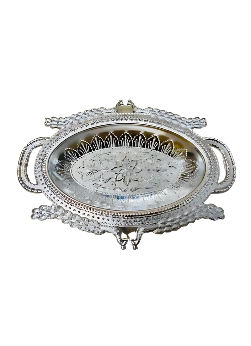 Bring a touch of elegance and charm to your home with the Peacock Tray Small. Perfect for serving sweets, dry fruits or simply as a decorative piece, this tray adds vibrancy and artistry to any table or shelf. Designed with intricate peacock motifs, it beautifully blends traditional design with modern functionality. Its compact size makes it ideal for pooja ceremonies, festive gatherings, or as a centerpiece in your living space. This tray also makes a thoughtful gift for festivals, weddings, housewarmings or special occasions, adding color and sophistication to any home decor.