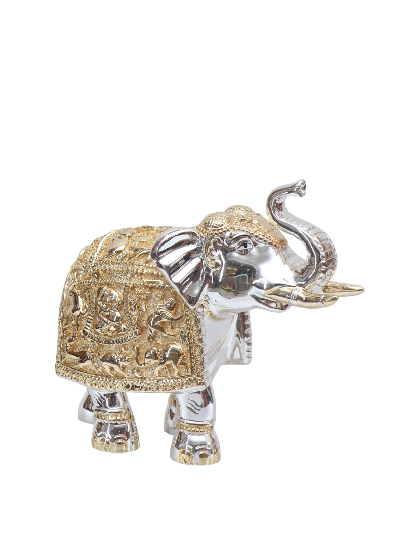Invite prosperity, wisdom and positive energy into your home with the Silver Coated Elephant 4", a beautifully crafted decorative piece that brings charm and elegance to any space. this elephant symbolizes good luck and spiritual harmony. Its compact size makes it perfect for tabletop decor, temple setups or as a thoughtful spiritual gift for festivals, weddings,5 and housewarming occasions.