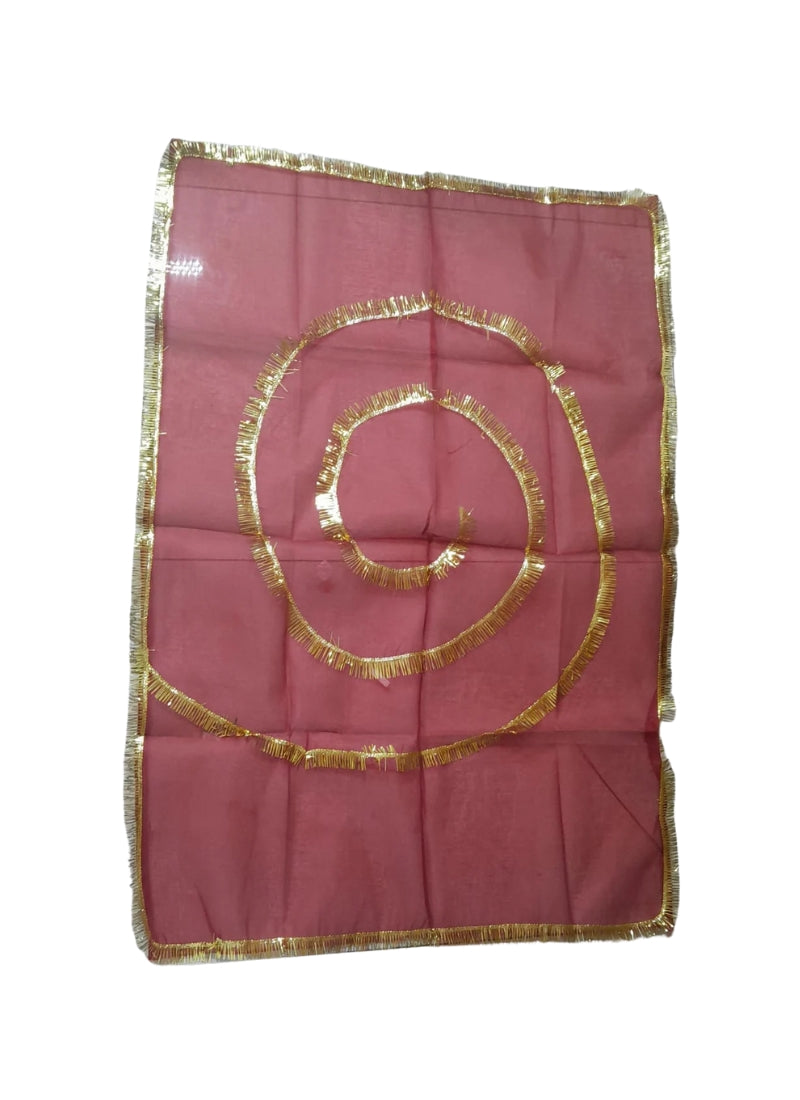 Enhance your rituals with this Red Pooja Cloth beautifully bordered with golden lace. Designed for spiritual use, this decorative cloth adds a divine touch to your altar, god idols, or pooja plates, symbolizing purity & devotion.