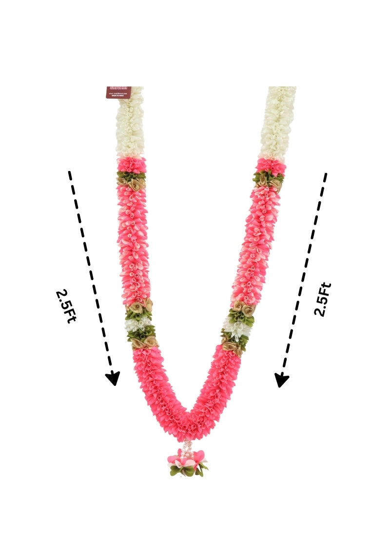 Bring vibrancy and elegance to your home with this 5-ft white and pink artificial garland, beautifully accented with green and golden floral touches. Perfect for pooja rooms, living spaces, doorways or festive decorations, it adds cheerful and traditional charm to any corner. This garland is long-lasting, reusable and maintenance-free, ensuring your decor stays bright and elegant all year. Ideal for festivals, weddings, home decoration and even as a thoughtful return gift, it blends aesthetic appeal with practicality.