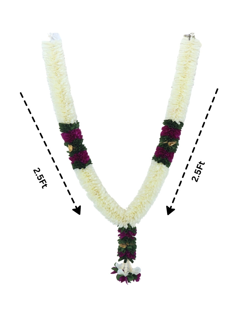 Add elegance and tradition to your special moments with this 5 Ft Artificial Indian Flower Garland. Designed with intricate detailing and vibrant color combinations of white, maroon, and green, this garland is a perfect blend of beauty and symbolism. Ideal for Indian weddings, religious ceremonies (pujas), housewarming functions, festivals, and traditional events, it brings a touch of authenticity to any occasion.